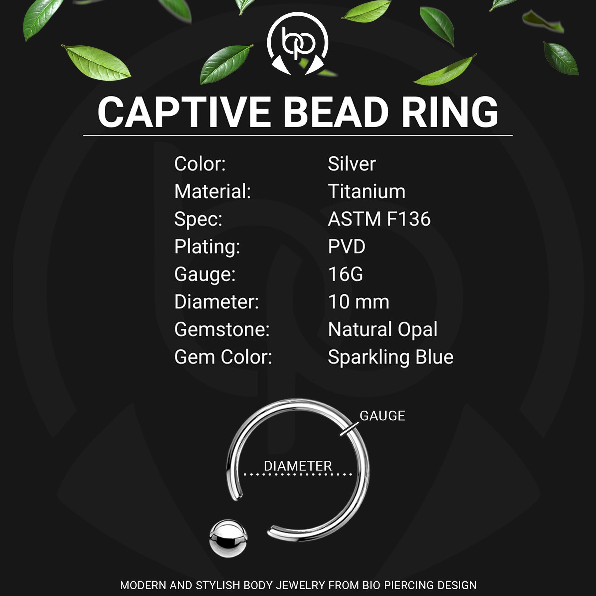Premium materials like titanium, surgical steel, gold and platinum plating, Swarovski crystals, cubic zirconias, and natural opals.