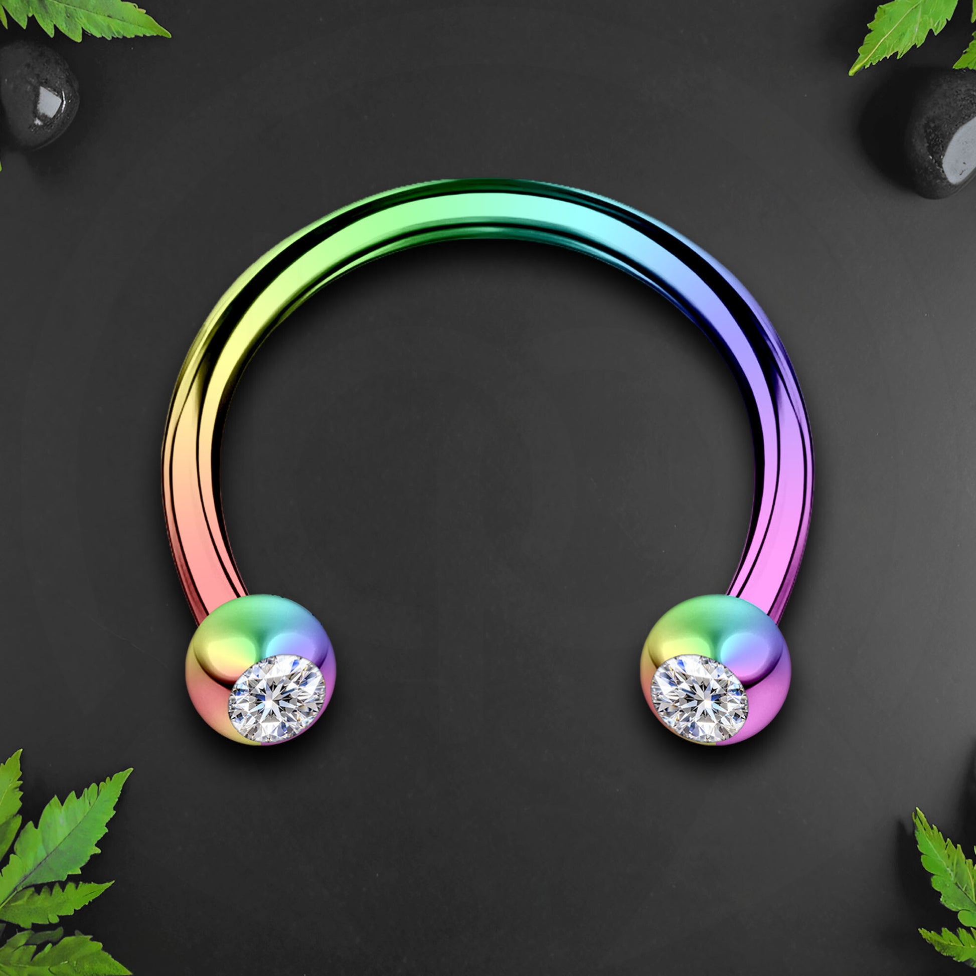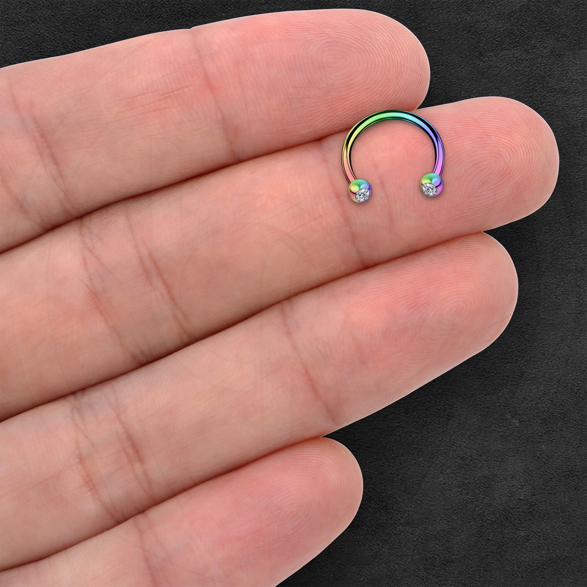 Surgical Steel Horseshoe Ring in Rainbow with Clear CZ