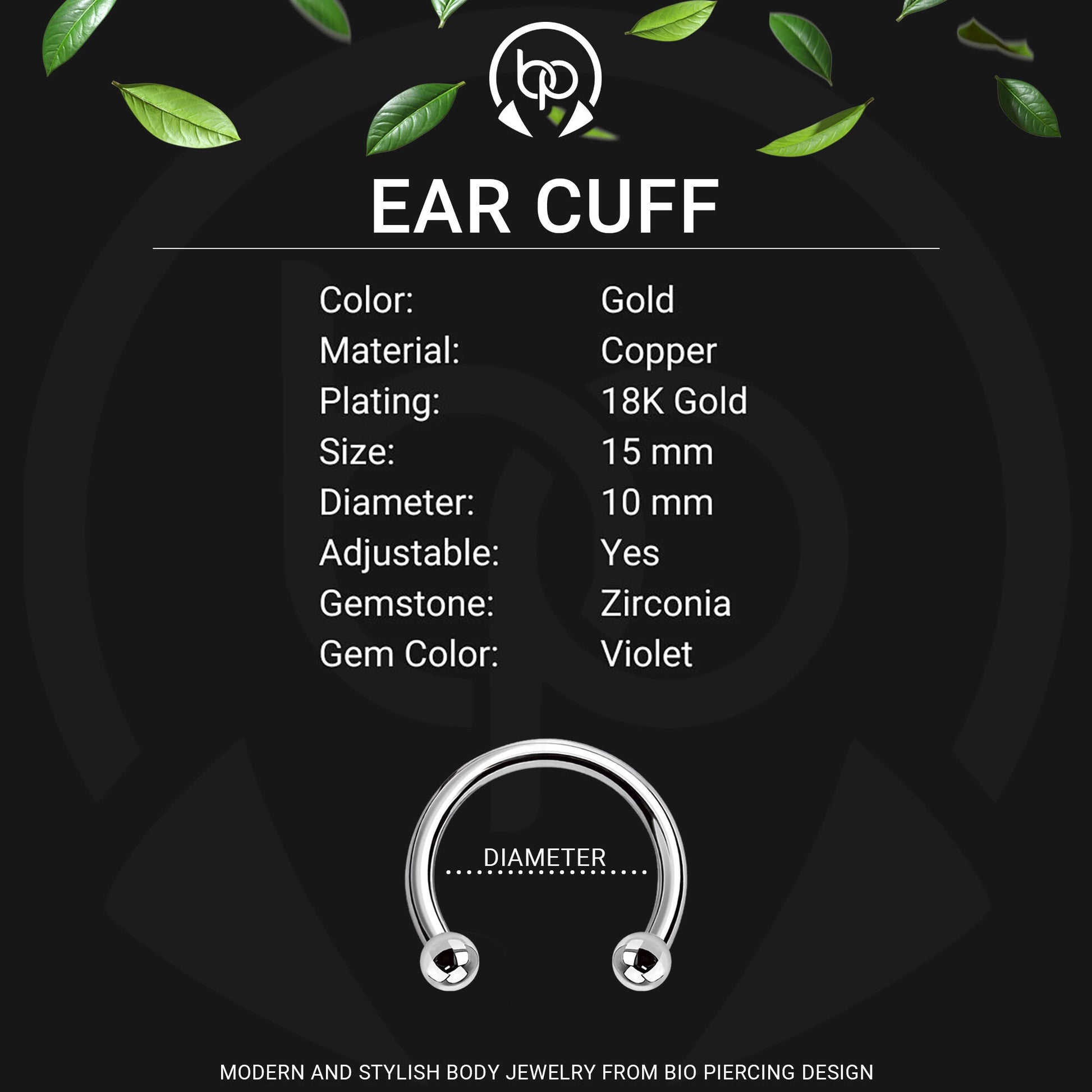 Gold Plated Ear Cuff in Thick Style with Purple CZ