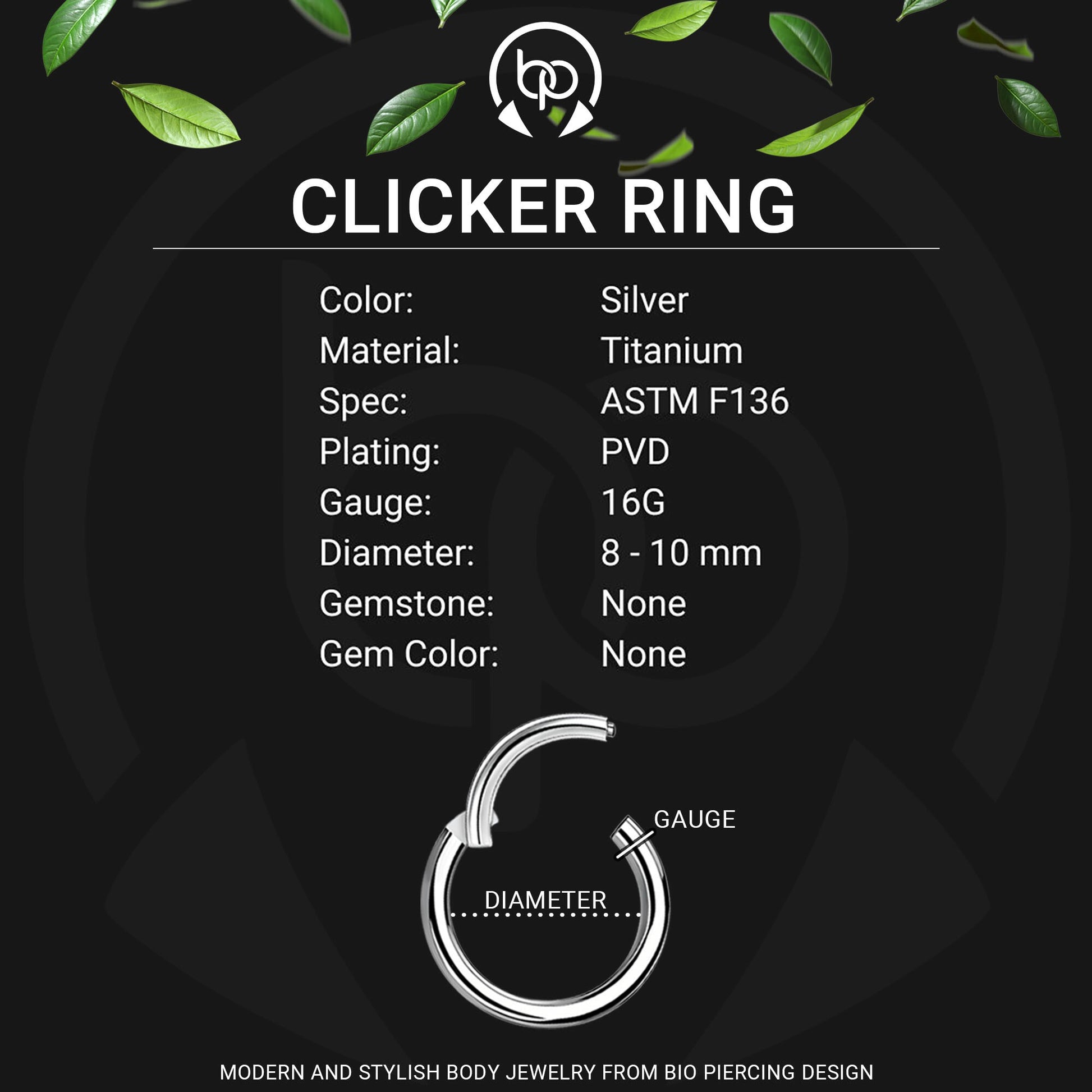 Premium materials like titanium, surgical steel, gold and platinum plating, Swarovski crystals, cubic zirconias, and natural opals.
