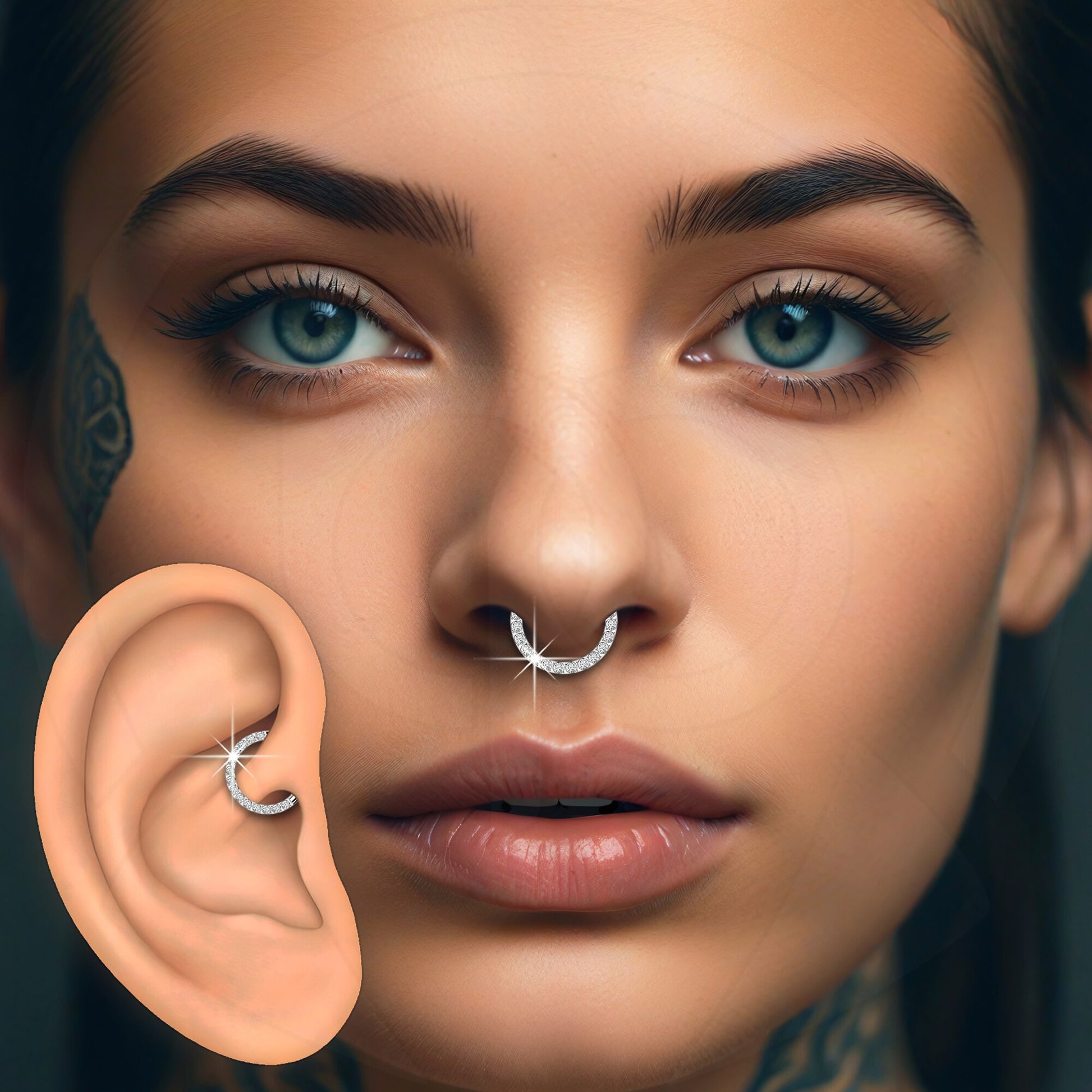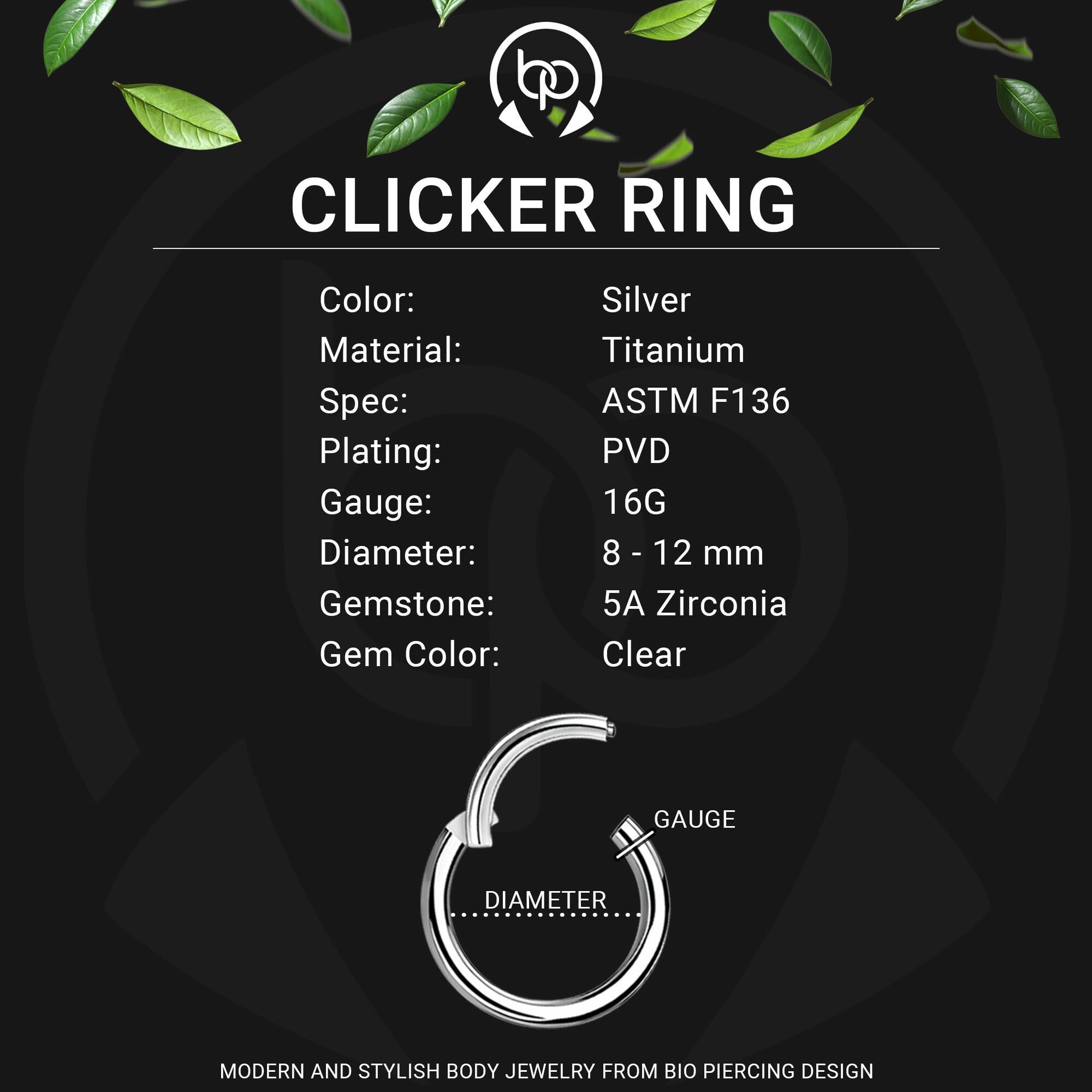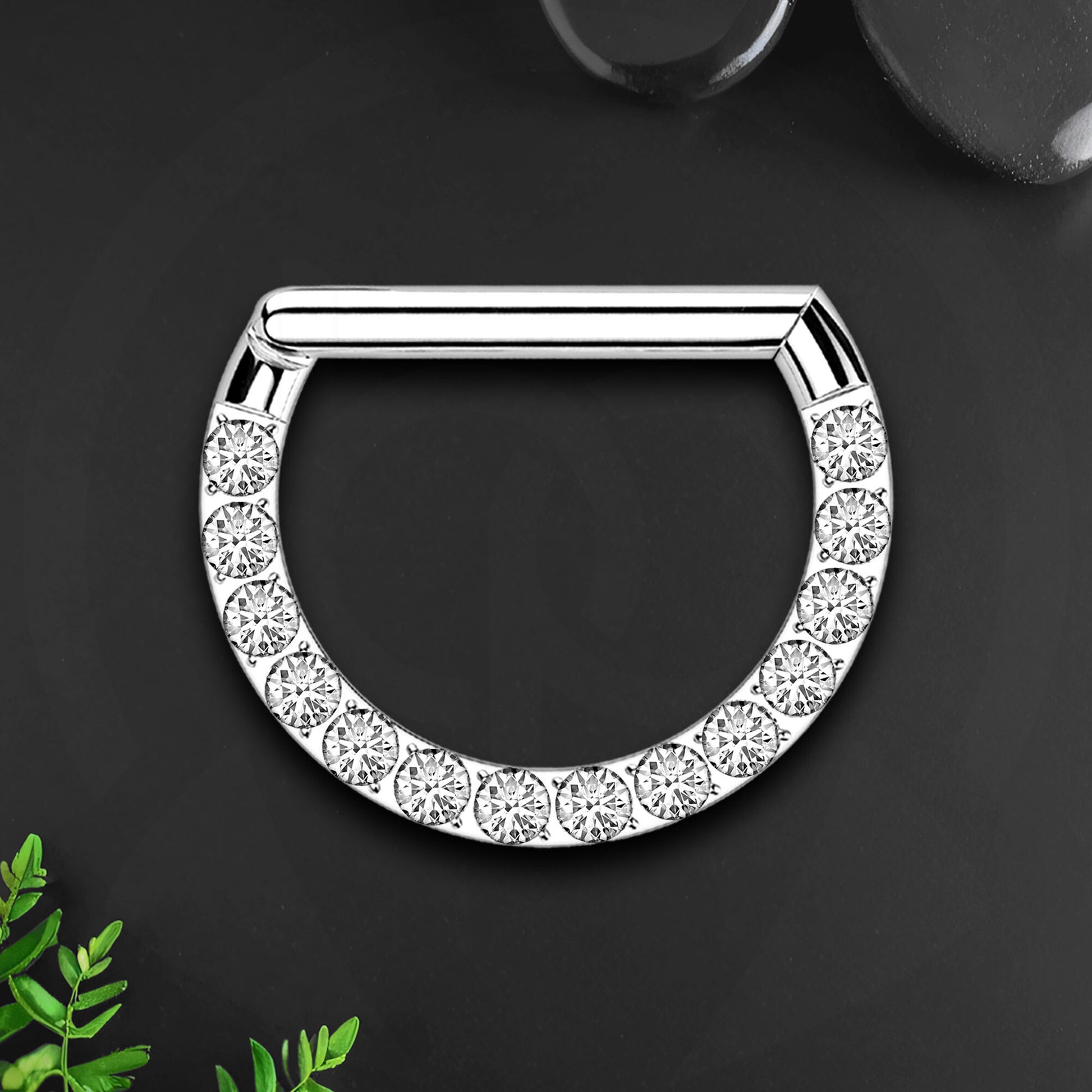 Titanium Clicker Ring in D Shape with Face Side CZ