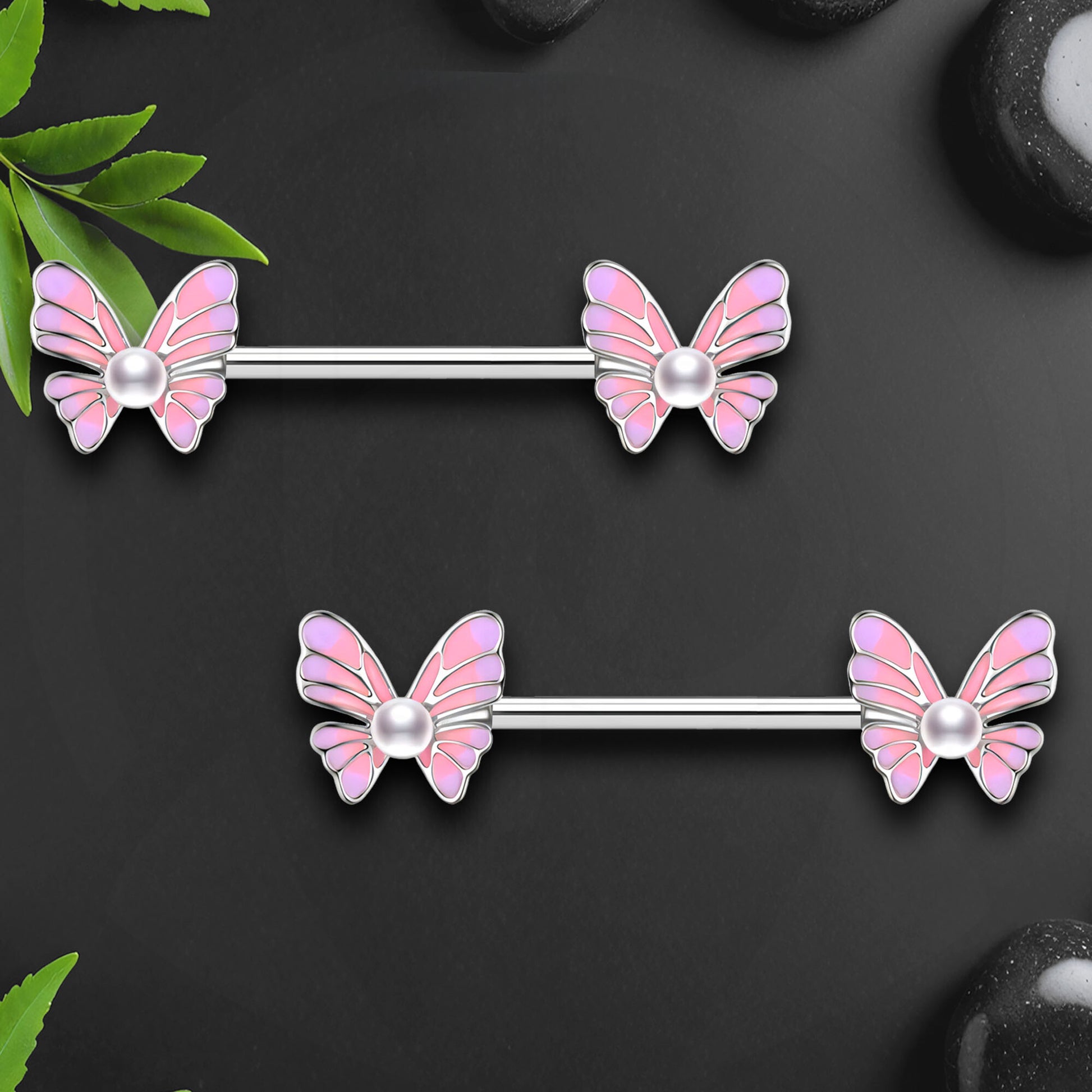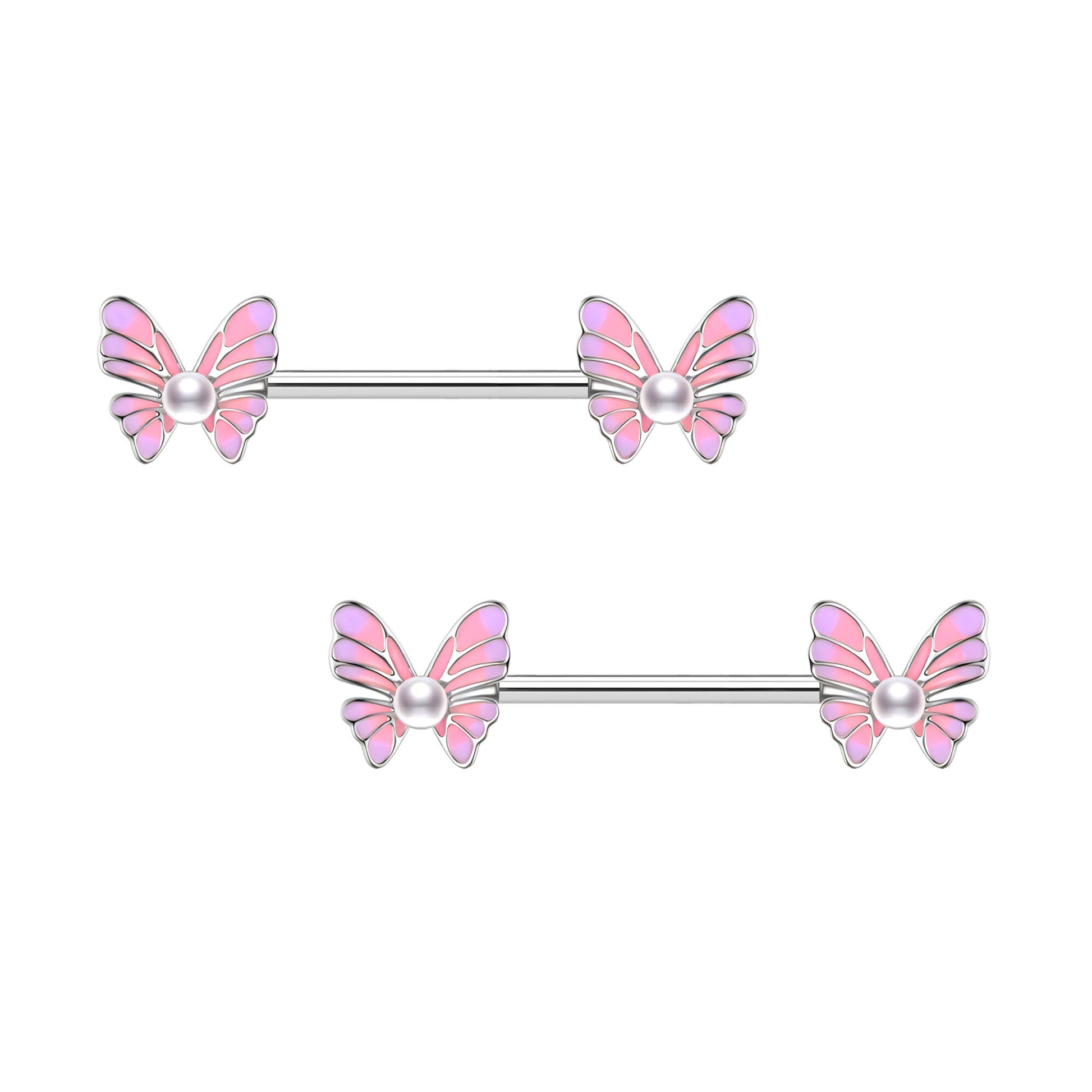 Surgical Steel Nipple Jewelry with Butterflies and Pearls